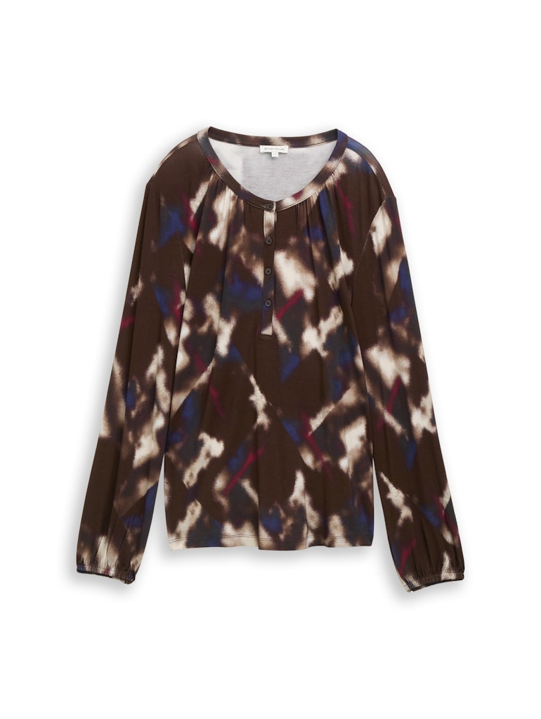 Shirt van Tom Tailor in een all-over dessin met lange mouwen en een ronde hals voorzien van ingewerkte plooien en korte knoopsluiting.