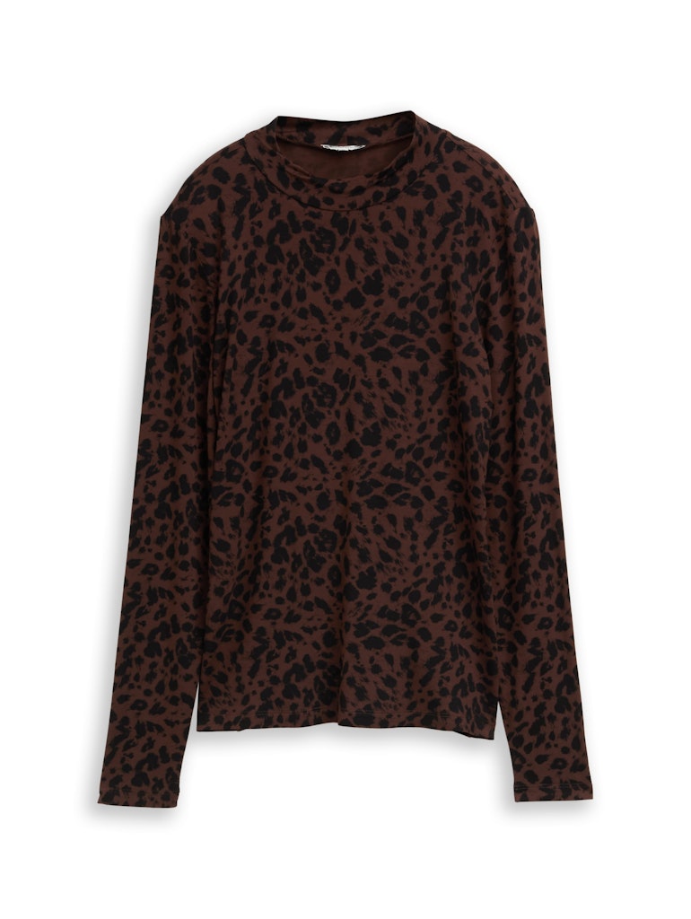 Slim fit shirt van Tom Tailor in een all-over dessin met lange mouwen en een ronde hals. Materiaal: Viscose 95%| spandex 5%