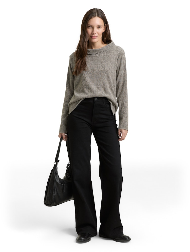 Shirt van Tom Tailor in een structuur dessin met lange mouwen en een ruime col. Materiaal: Polyester 98%| spandex 2%