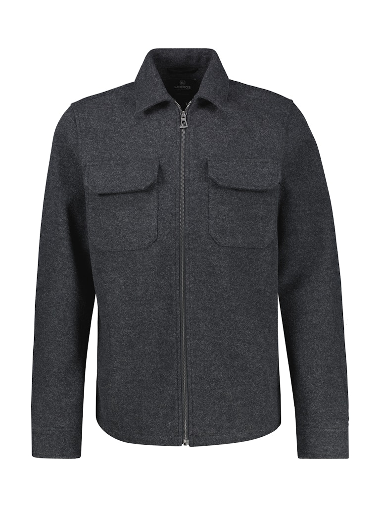 Gemêleerd overshirt van Lerros met lange mouwen, ritssluiting, kraag en twee opgestikte klepzakken op de borst. Materiaal: Polyester 90%| viscose 10%