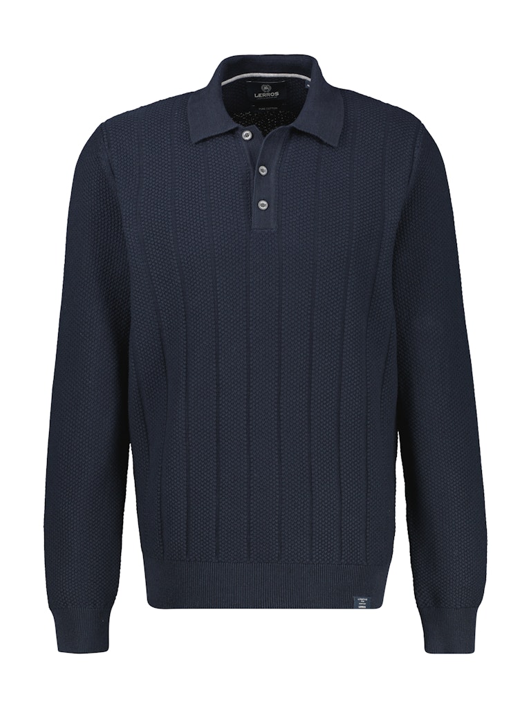 Trui van Lerros in een gestreept structuur dessin met lange mouwen, kraag voorzien van korte knoopsluiting en ribgebreide boorden. Materiaal: Katoen 100%