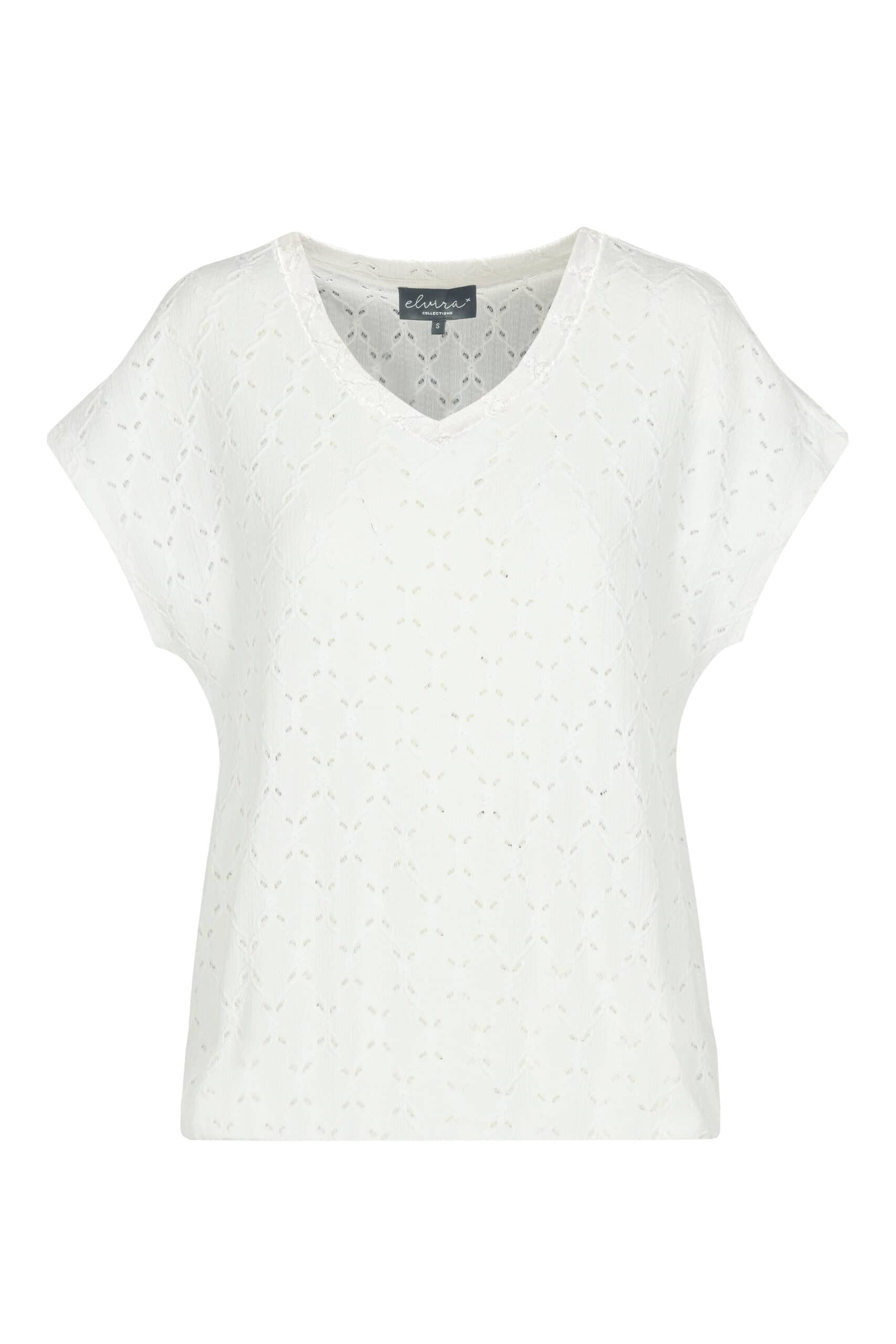 Broderie shirt van Elvira met korte aangeknipte mouwen en een V-hals.