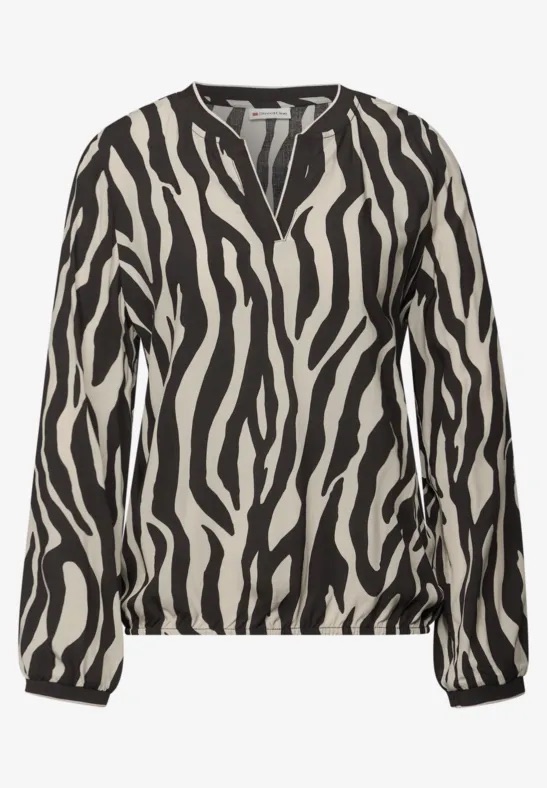Chiffon blouse van Street One in een zebra print met lange mouwen, ronde hals en een knoopsluiting. Materiaal: Polyester 100%