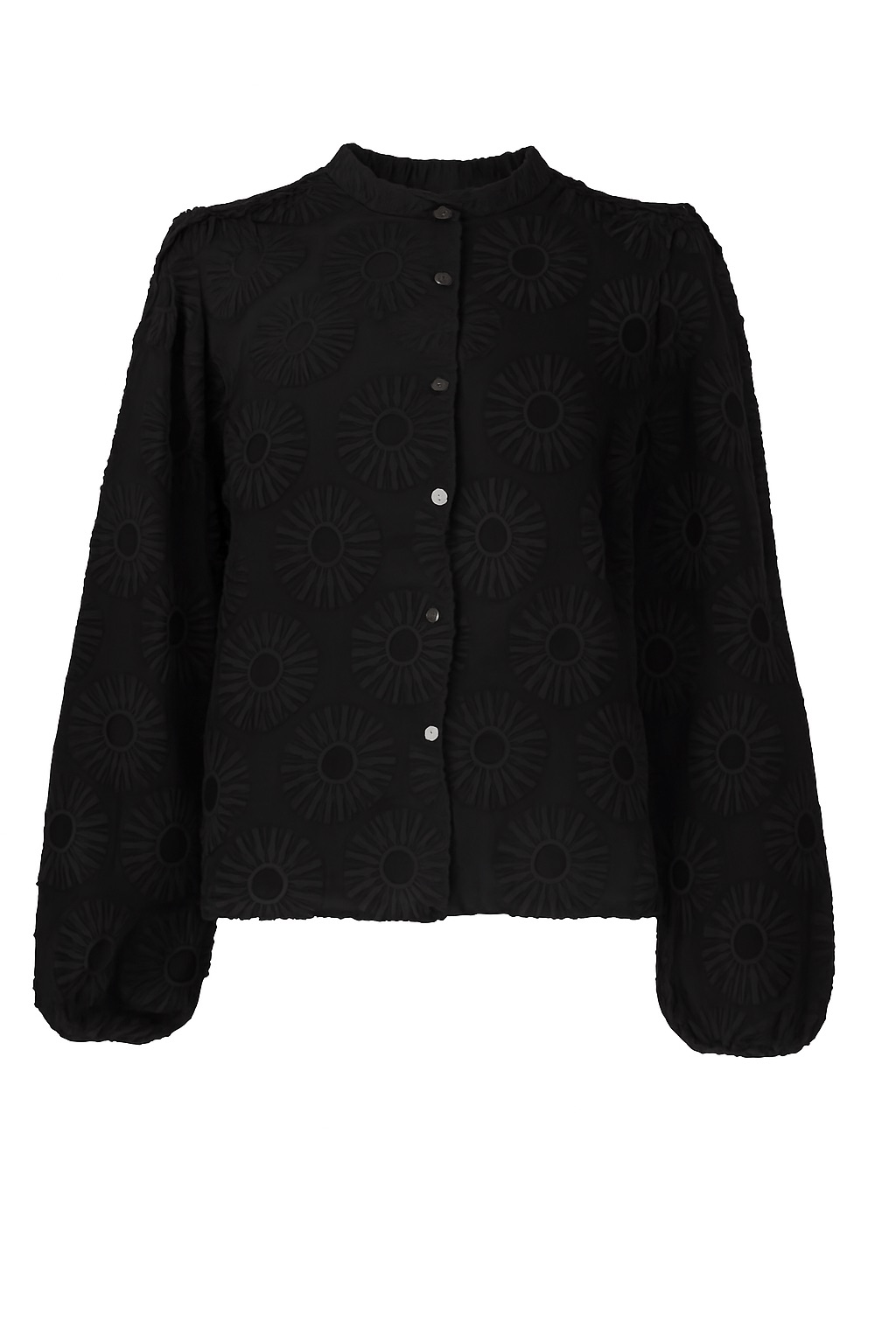 Blouse van INCK in een geborduurde bloemen print met lange pofmouwen, opstaande kraag en een knoopsluiting.