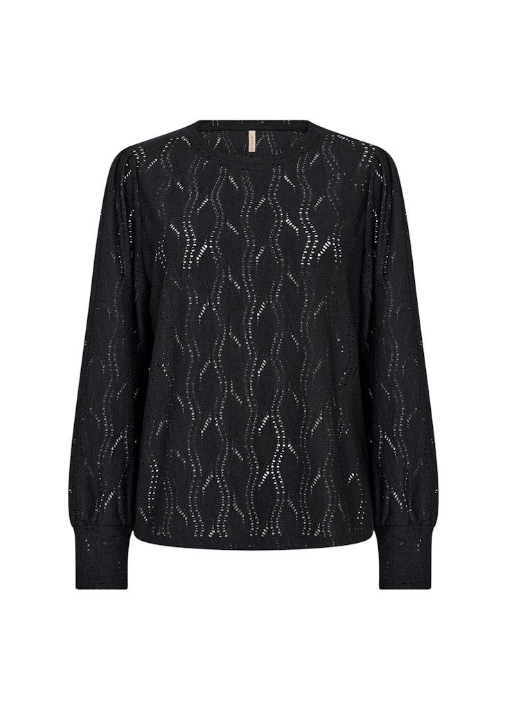 Blouse van Soya Concept in een opengewerkt dessin met lange pofmouwen en een ronde hals. Materiaal: Polyester 95%| elastan 5%
