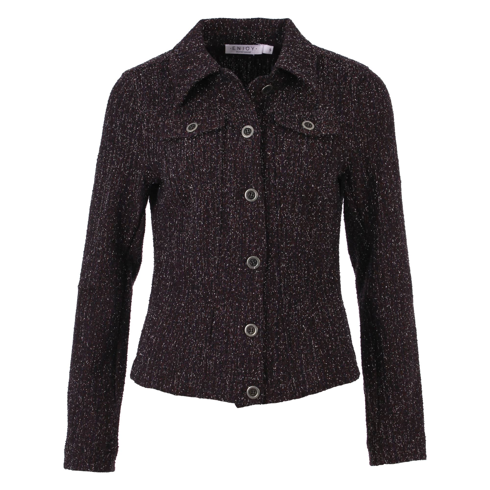 Blazer van Enjoy in een glitter structuur stof met lange mouwen, kraag, twee borstzakken en een knoopsluiting. Materiaal: Katoen 50%| polyester 30%| viscose 10%| lurex 10%