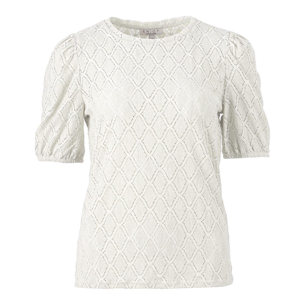 Shirt van Enjoy in een structuur dessin met korte pofmouwen en een ronde hals. Materiaal: Polyester 98%| elastan 2%
