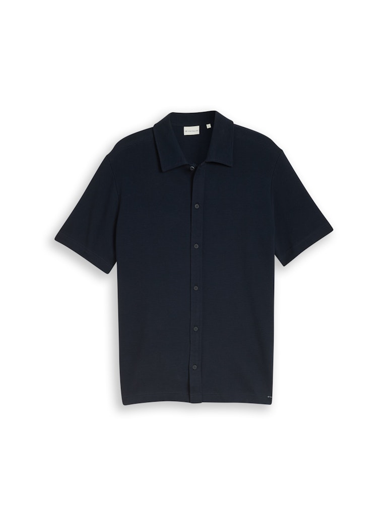 Jersey overhemd van Tom Tailor in een subtiel dessin met korte mouwen, kraag en een knoopsluiting. Materiaal: Katoen 100%