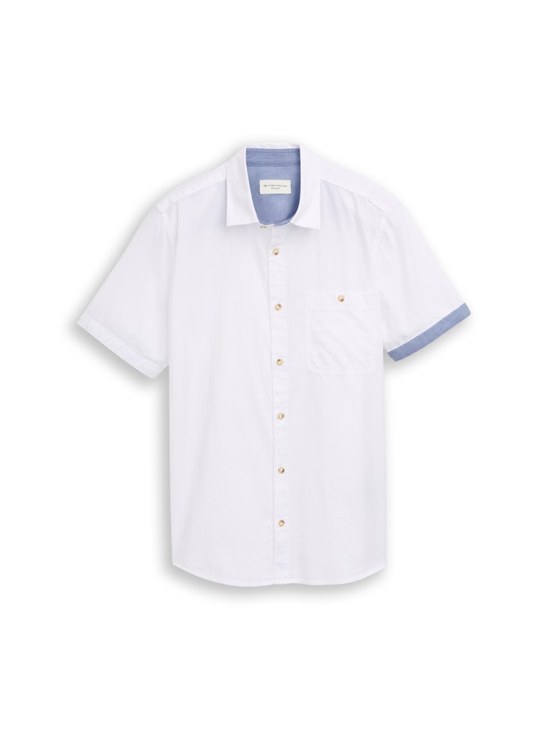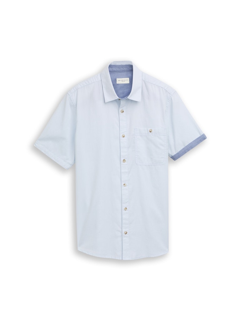 Overhemd van Tom Tailor met korte mouwen voorzien van contrasterende omslag, kraag, knoopsluiting en een opgestikte borstzak. Materiaal: Katoen 100%
