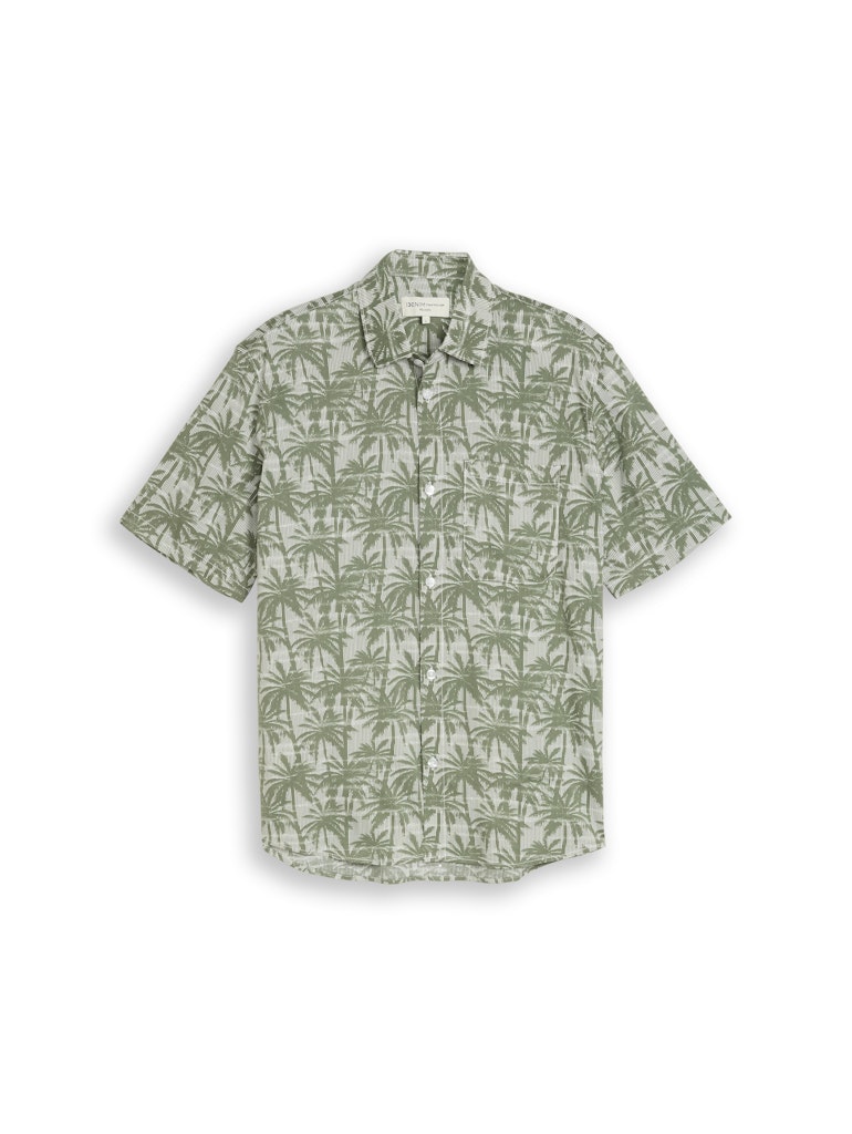 Relaxed fit overhemd van Tom Tailor Denim in een palmbomen print met korte mouwen, kraag en een knoopsluiting.