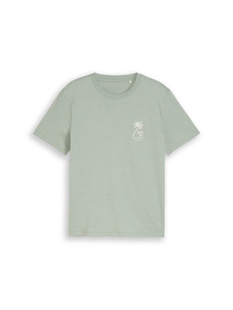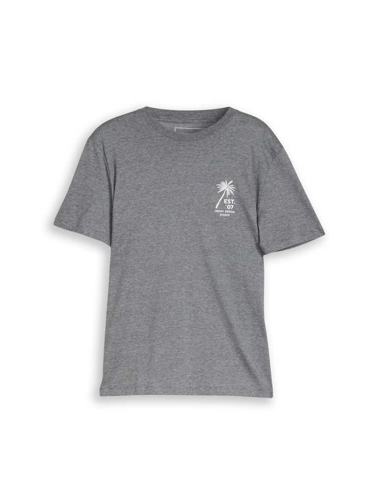 Gemêleerd T-shirt van Tom Tailor Denim met korte mouwen, ronde hals en een palmprint op de linkerborst. Materiaal: Katoen 100%