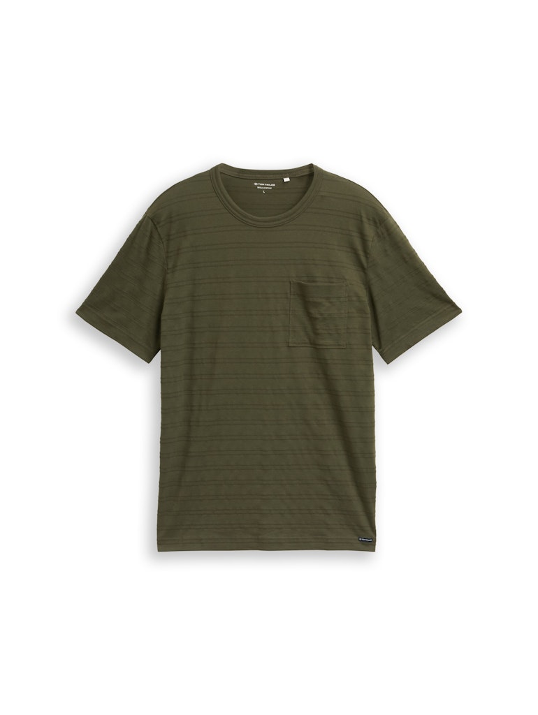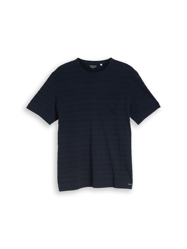 T-shirt van Tom Tailor in een gestructureerd streepjes motief met korte mouwen, ronde hals en een opgestikte borstzak.