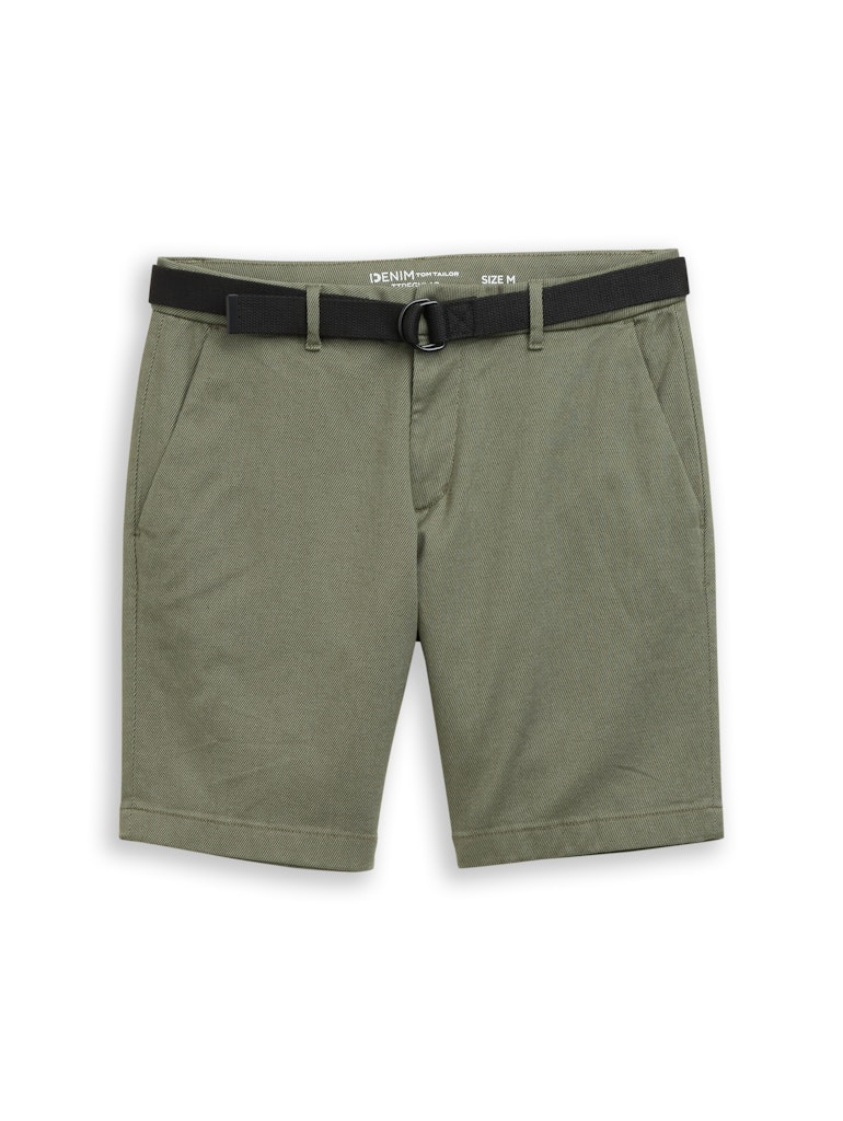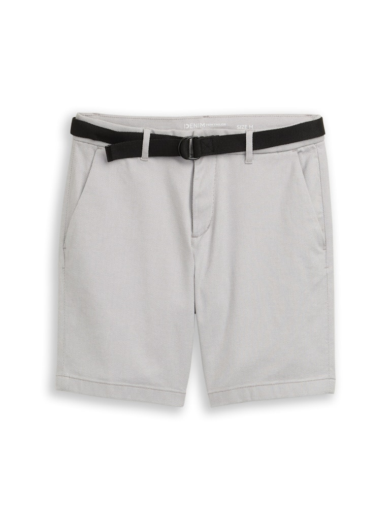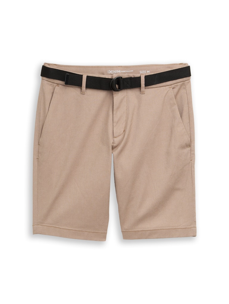 Chino short van Tom Tailor Denim in een gestructureerde katoenen stof met een knoop- en ritssluiting, steekzakken, een paspelzak aan de achterzijde en een ceintuur in de taille.