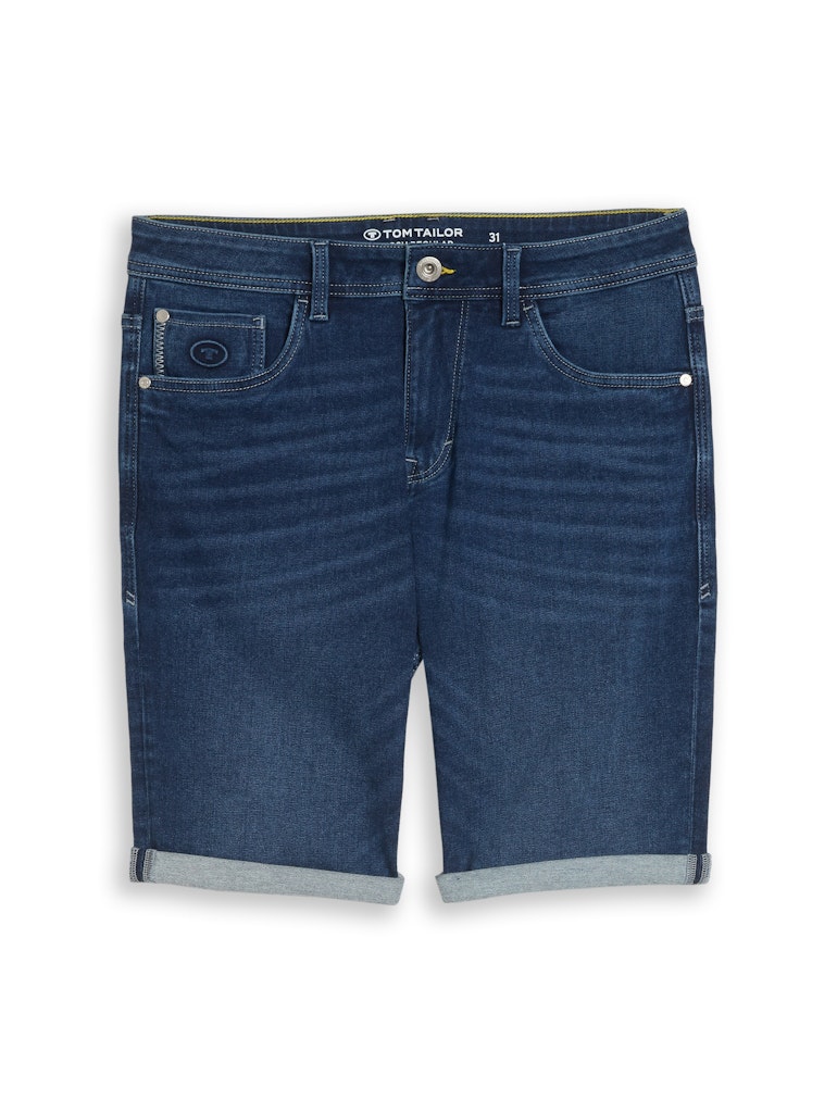 5-pocket denim short van Tom Tailor met een knoop- en ritssluiting. Materiaal: Katoen 78%| gerecycled katoen 20%| spandex 2%