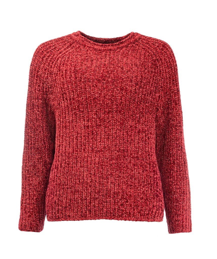 Gemêleerde chenille trui van N.E.D. in een ribstructuur voorzien van lurex met een ronde hals en lange raglanmouwen. Materiaal: Polyester 97%| lurex 3%