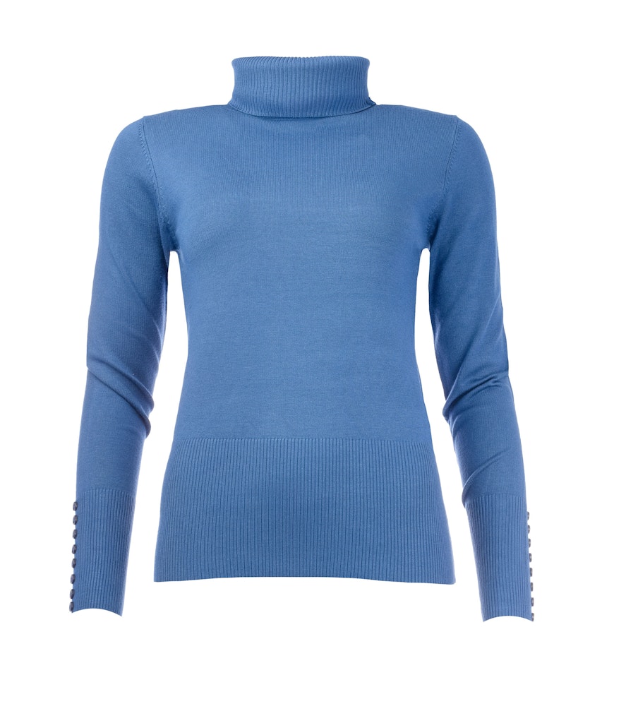 Coltrui van N.E.D. met lange mouwen voorzien van brede ribgebreide manchetten met knopen en een brede ribgebreide boord aan de onderzijde. Materiaal: Viscose 80%| polyamide 20%