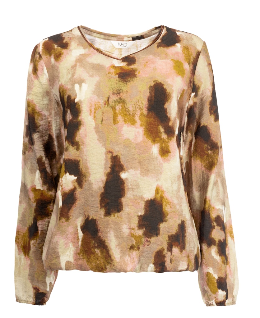 Shirt van N.E.D. in een all-over dessin met lange mouwen, afgeronde V-hals en een elastische zoom. Materiaal: Viscose 85%| polyamide 15%