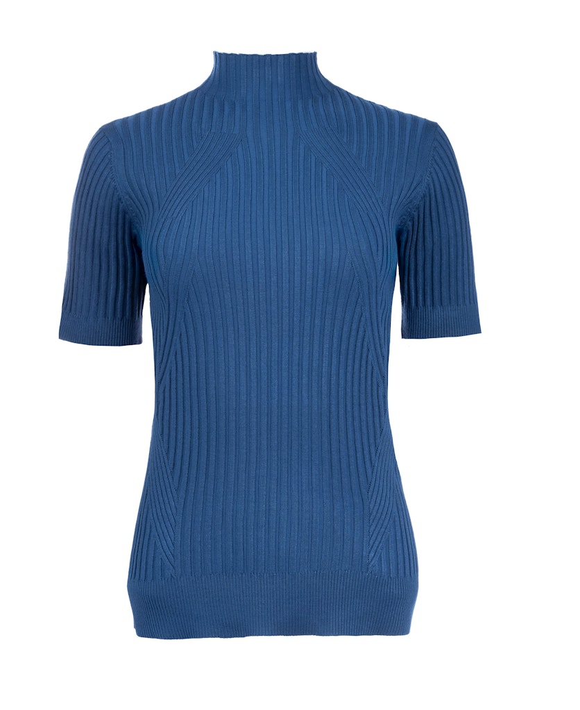 Top van N.E.D. in een ribstructuur met korte mouwen, turtleneck en ribgebreide boorden. Materiaal: Viscose 80%| polyamide 20%