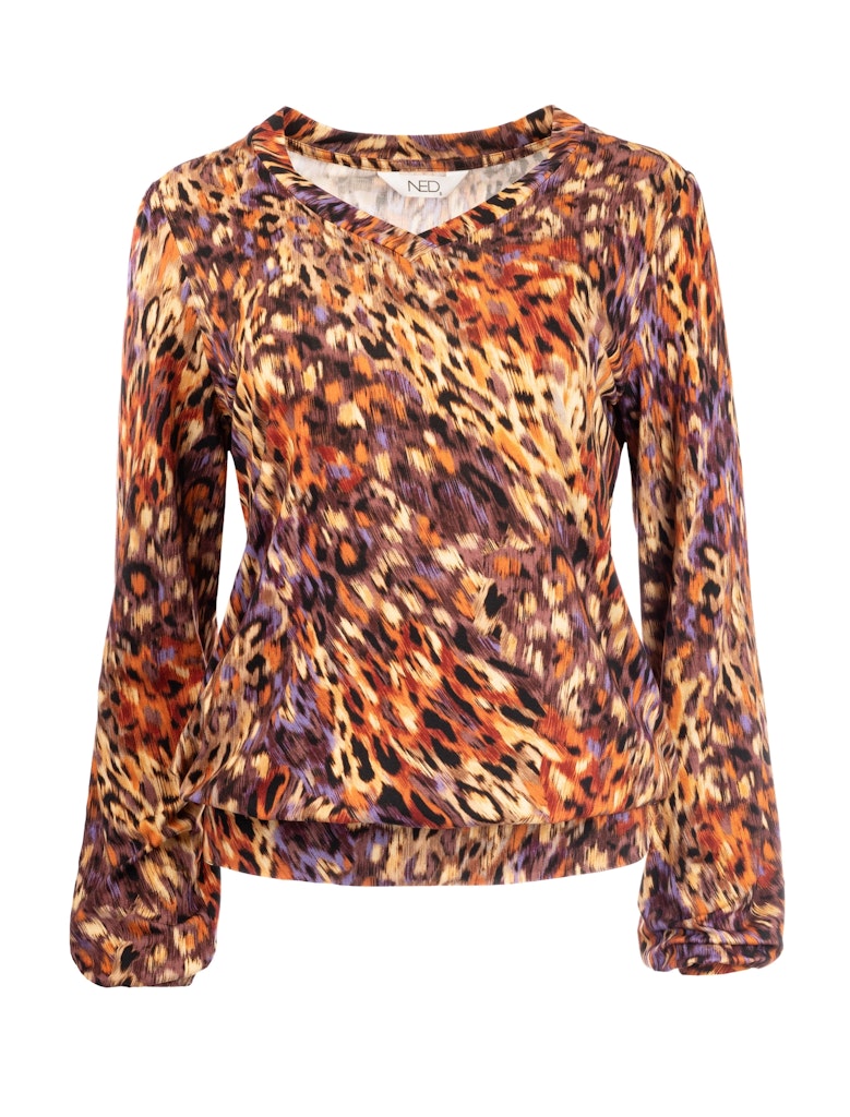 Shirt van N.E.D. in een all-over dessin met lange mouwen, V-hals en een elastisch boord aan de onderzijde. Materiaal: Rayon 93%| elastan 7%