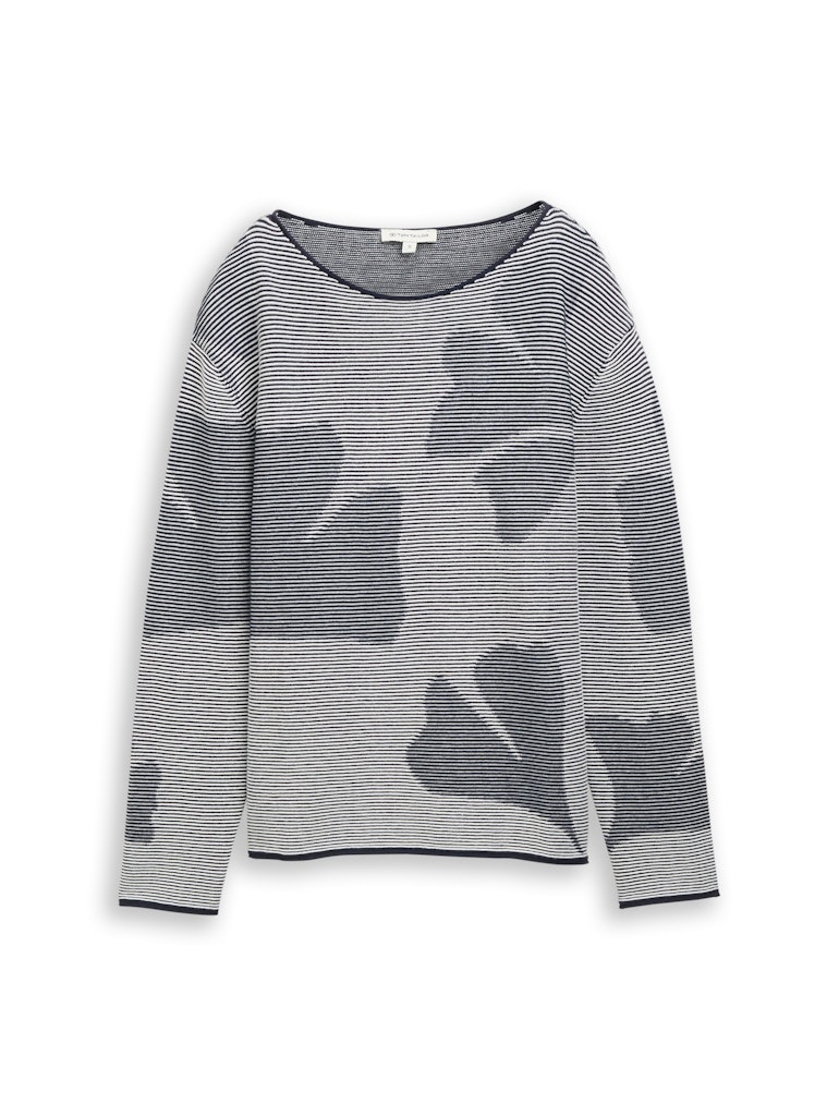 Gebreide trui van Tom Tailor in een structuur dessin met lange mouwen, verlaagde schoudernaden en een boothals. Materiaal: Katoen 100%