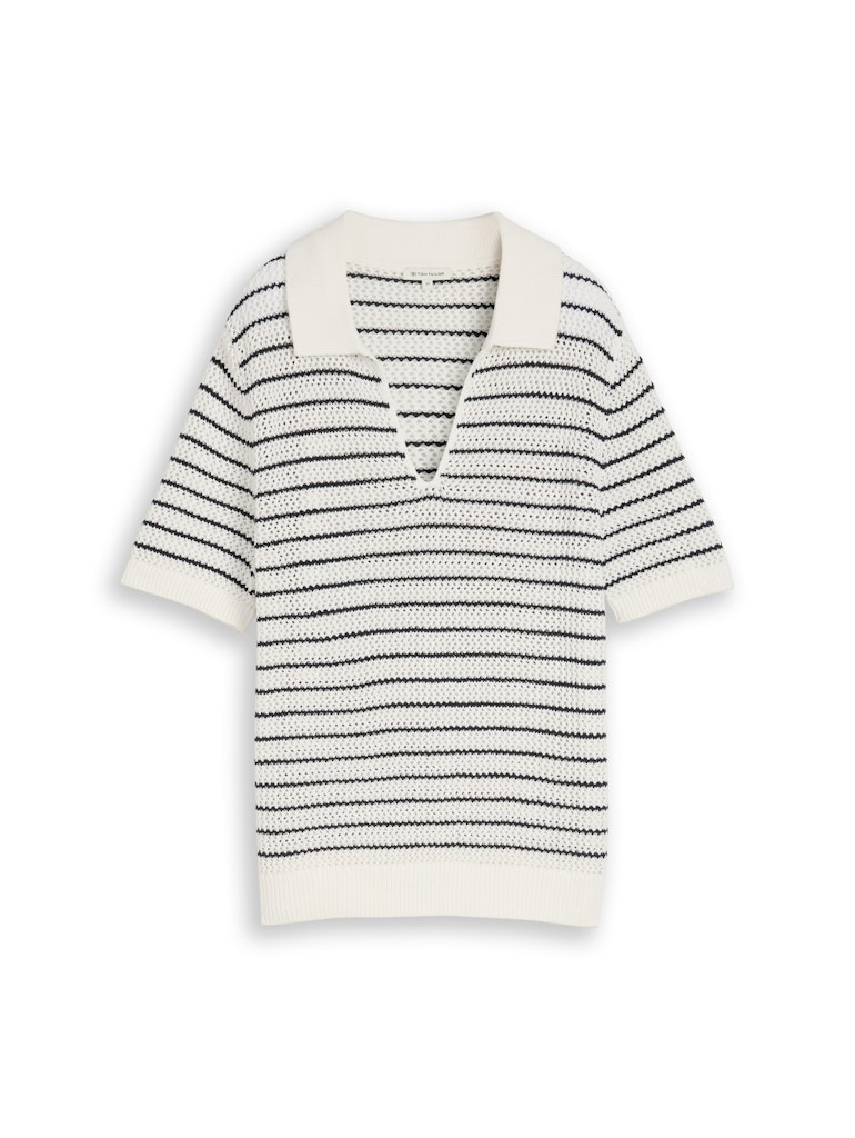 Gestreepte gebreide trui van Tom Tailor met korte mouwen, polokraag, V-hals en ribgebreide boorden. Materiaal: Katoen 50%| acryl 50%
