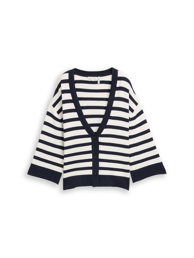Gestreept loose fit vest van Tom Tailor met driekwart mouwen, V-hals en een knoopsluiting. Materiaal: Viscose 85%| polyamide 15%