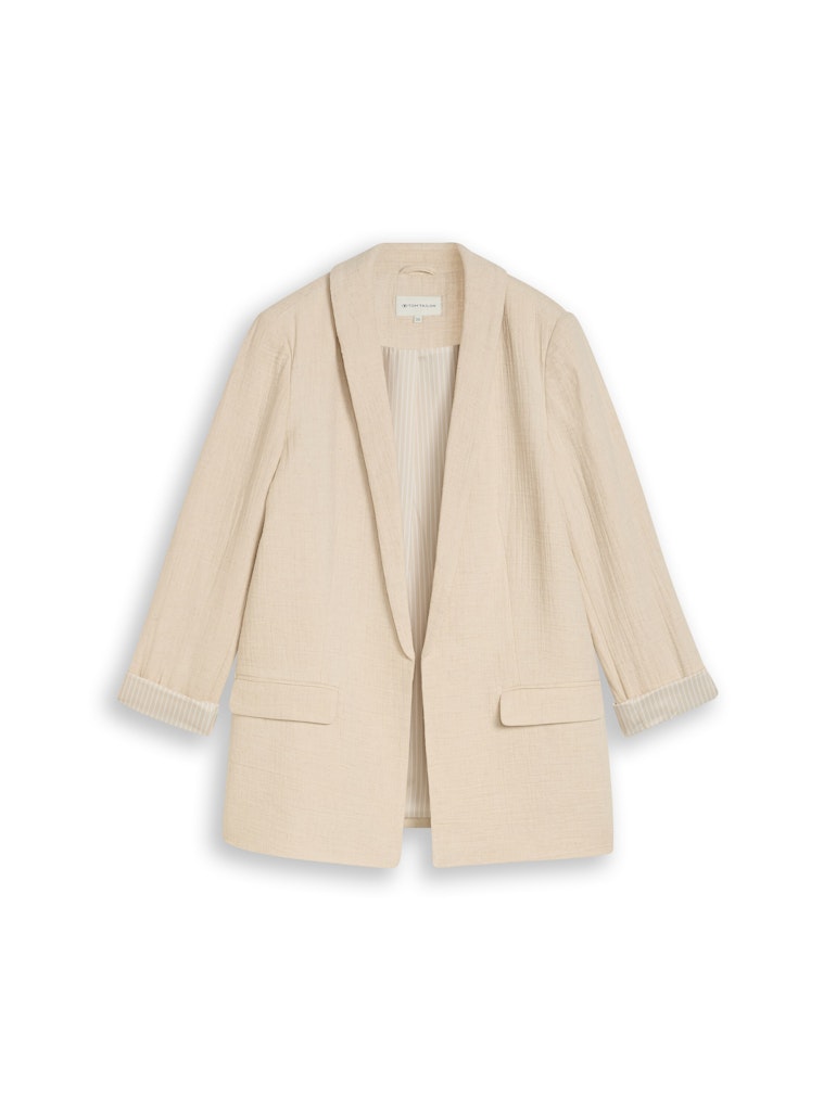 Openvallende oversized blazer van Tom Tailor met lange mouwen voorzien van omslag, reverskraag en twee klepzakken. Materiaal: Katoen 70%| linnen 30%