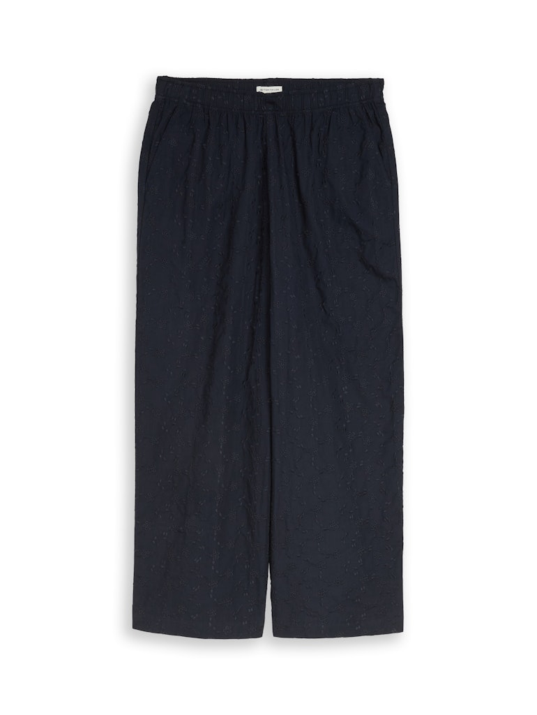 Culotte van Tom Tailor voorzien van borduursels met wijde pijpen, steekzakken, hoge taille en een elastische tailleband. Materiaal: Katoen 100%