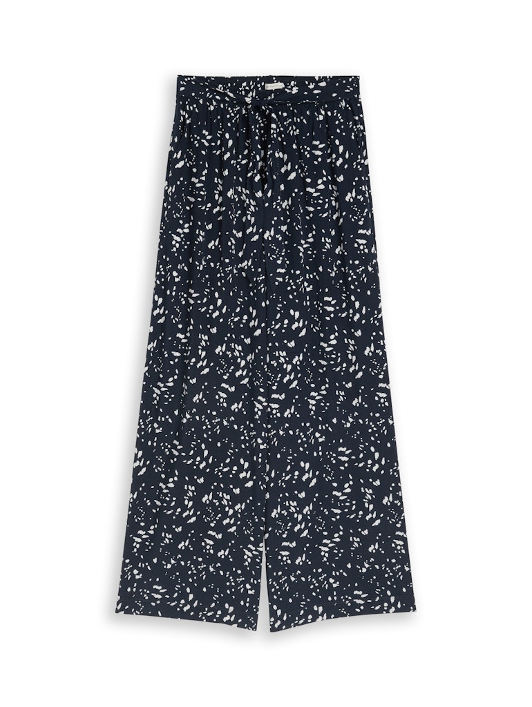 Broek van Tom Tailor in een all-over dessin met wijde pijpen, steekzakken en een elastische tailleband voorzien van strikceintuur.
