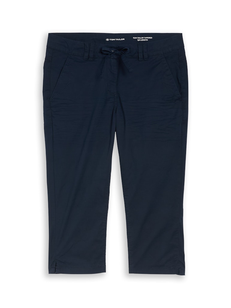 Capri broek van Tom Tailor met een knoop- en ritssluiting, steekzakken, twee opgestikte achterzakken, korte split in de pijpen en een trekkoord in de taille.