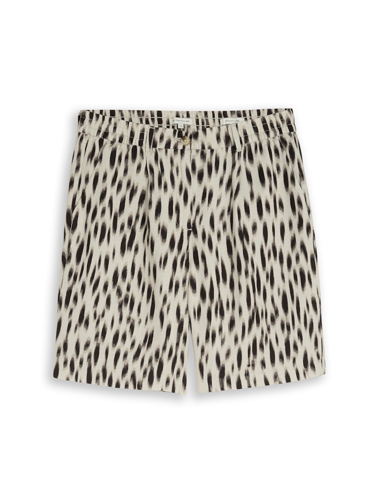 Linnen short van Tom Tailor in een animal dessin met steekzakken, twee paspelzakken aan de achterzijde en een elastische tailleband voorzien van trekkoord. Materiaal: Linnen 55%| viscose 45%