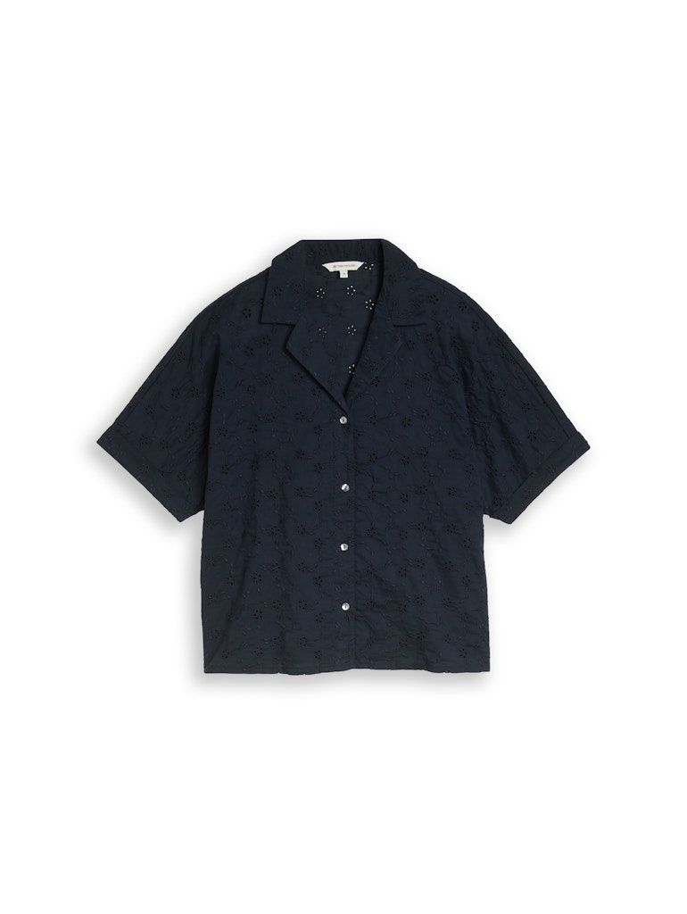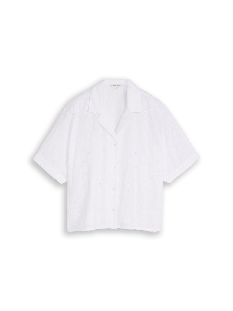 Oversized broderie blouse van Tom Tailor met halflange mouwen voorzien van omslag, reverskraag en een knoopsluiting. Materiaal: Katoen 100%