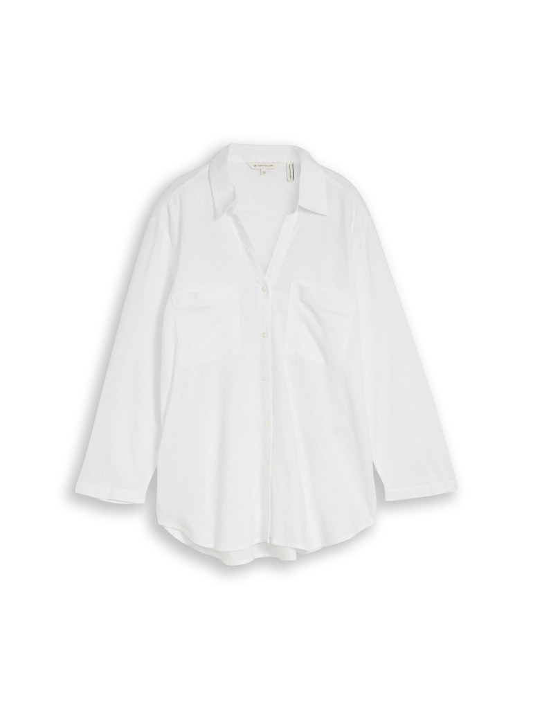 Gestreepte blouse van Tom Tailor met driekwart mouwen, kraag, V-hals, knoopsluiting, twee opgestikte borstzakken en een afgeronde zoom. Materiaal: Linnen 55%| viscose 45%
