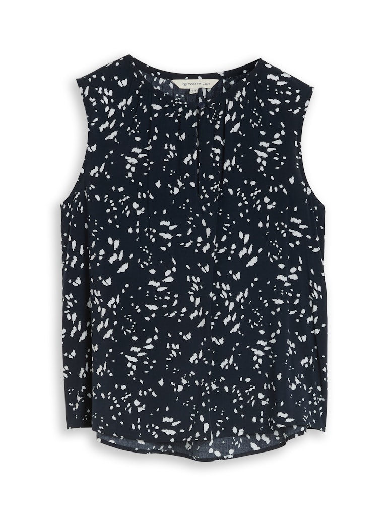 Mouwloze blouse van Tom Tailor in een all-over dessin met een ronde hals voorzien van split en knoopsluiting aan de voorzijde.