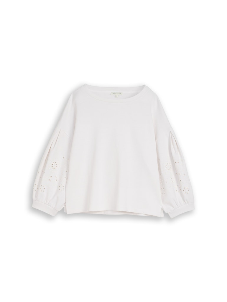 Boxy sweater van Tom Tailor met een ronde hals, zijsplitten, lange mouwen voorzien van opengewerkte borduursels en verlaagde schoudernaden voorzien van plooien.