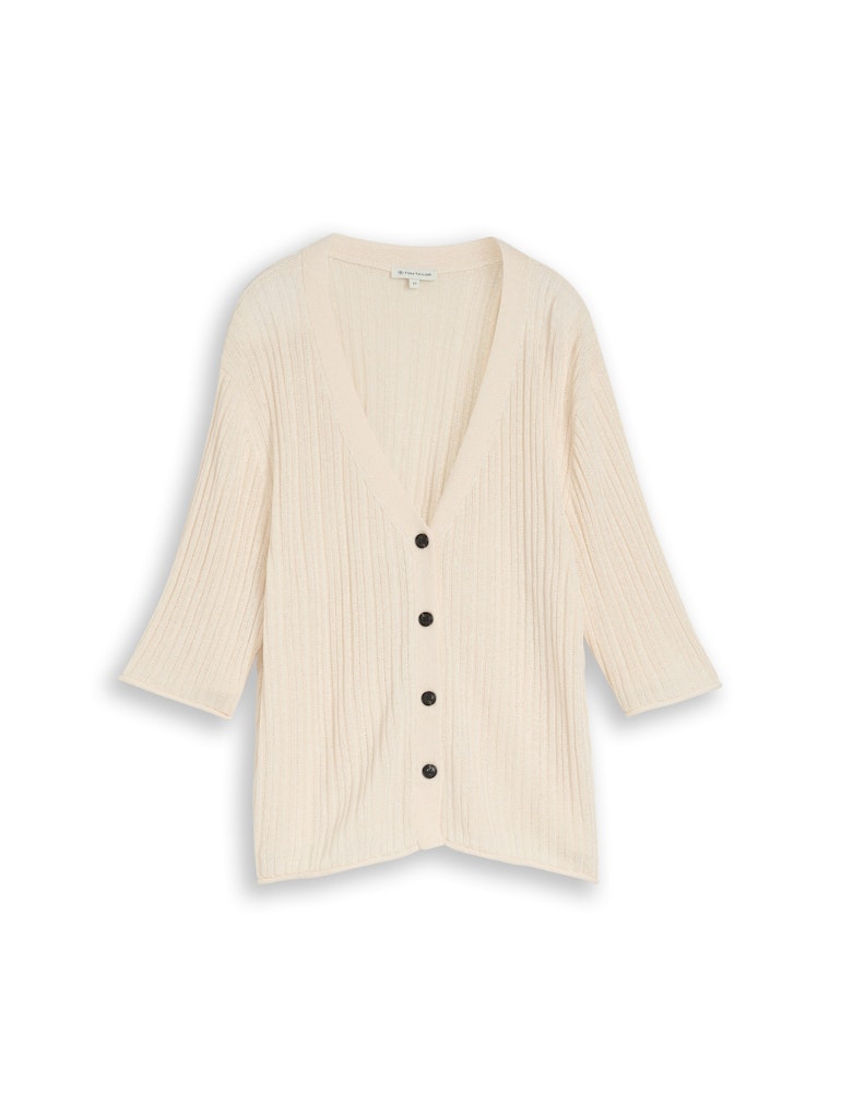 Losvallend gebreid vest van Tom Tailor in een ribstructuur met halflange mouwen, V-hals, knoopsluiting en ribgebreide boorden.