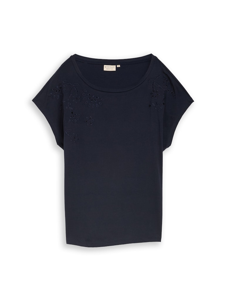 T-shirt van Tom Tailor voorzien van opengewerkte borduursels op de schouders, korte aangeknipte mouwen en een ronde hals.
