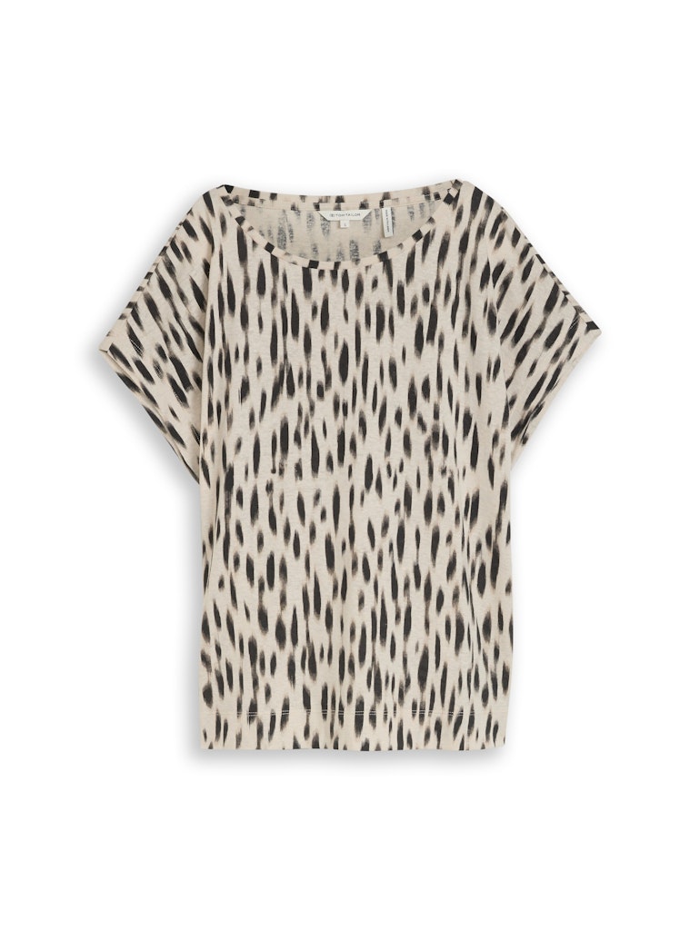 Oversized shirt van Tom Tailor in een all-over dessin met korte aangeknipte mouwen en een ronde hals. Materiaal: Linnen 52%| polyester 48%