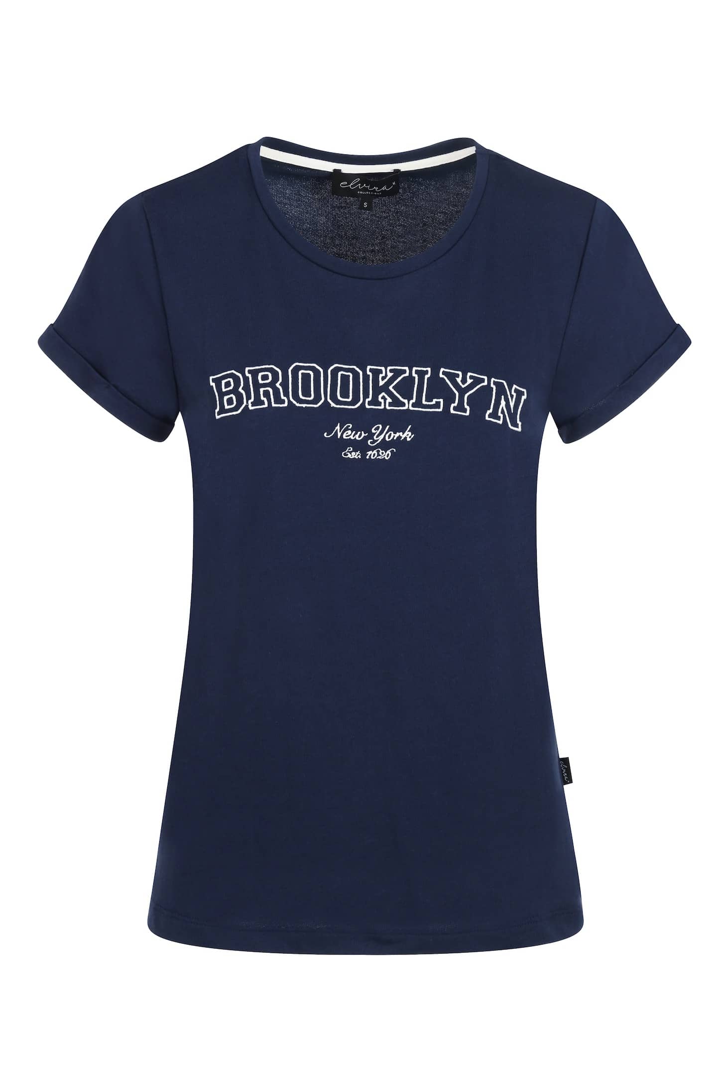 T-shirt van Elvira met korte mouwen voorzien van omslag, ronde hals en Broolyn tekstprint op de voorzijde.