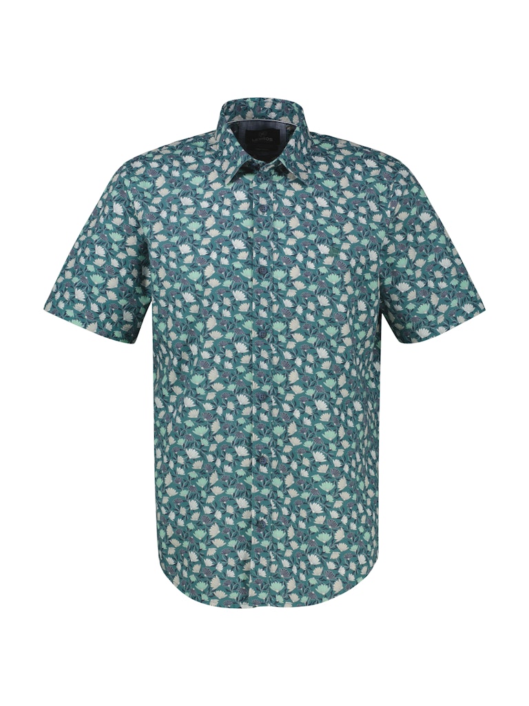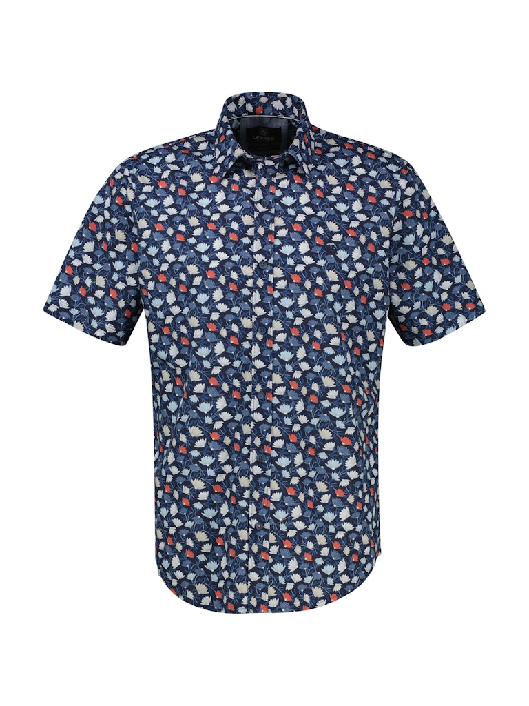 Overhemd van Lerros in een all-over dessin met korte mouwen, kent kraag en een knoopsluiting. Materiaal: Katoen 100%