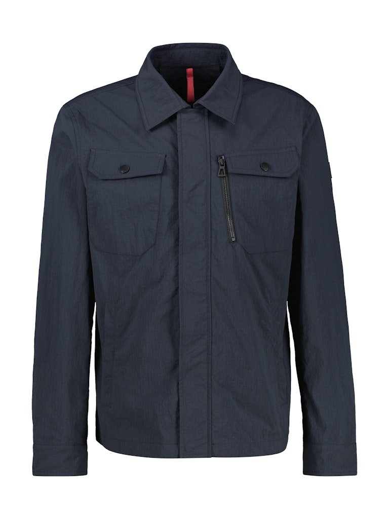 Jack van Lerros met een verborgen ritssluiting, kraag, steekzakken, logo op de linkermouw, twee klepzakken en een ritszak op de borst.
