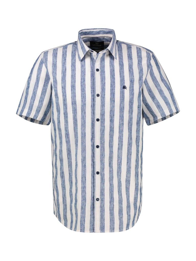 Gestreept overhemd van Lerros met kort mouwen, kent kraag, knoopsluiting en geborduurd logo op de linkerborst.