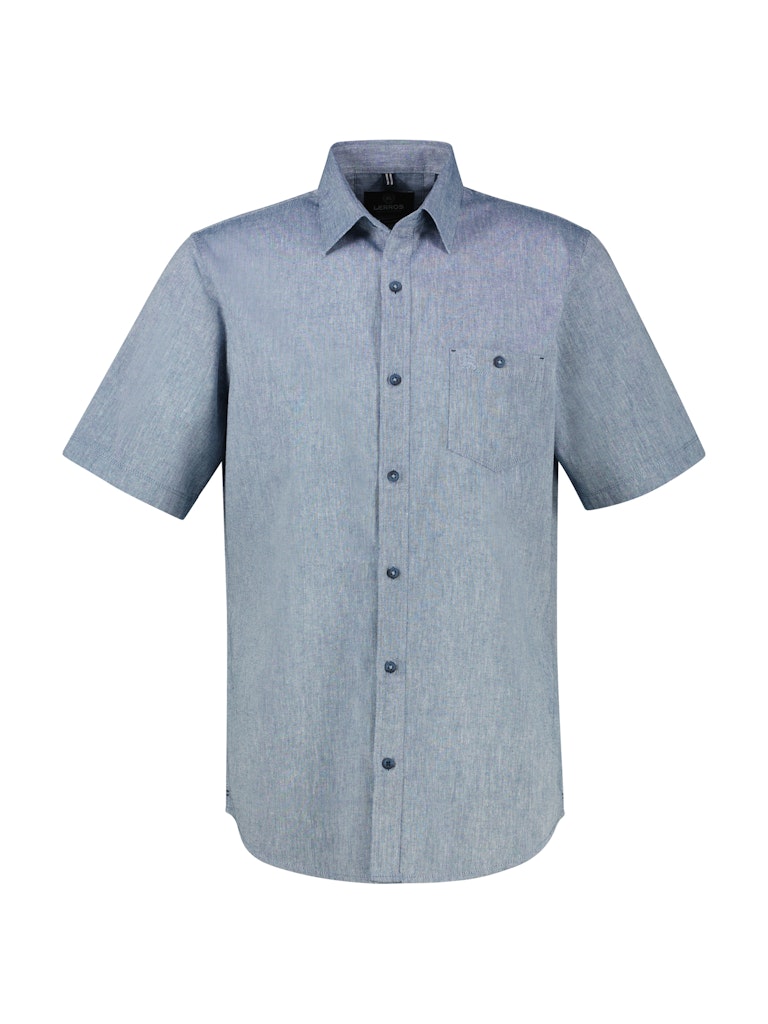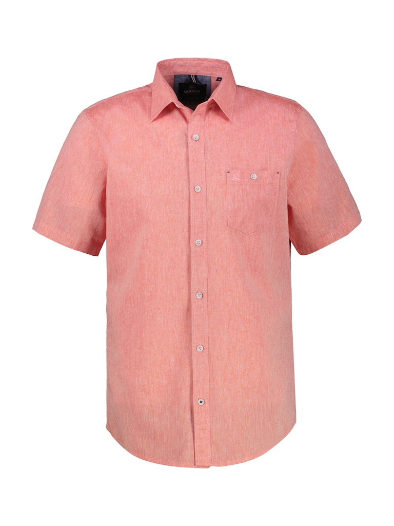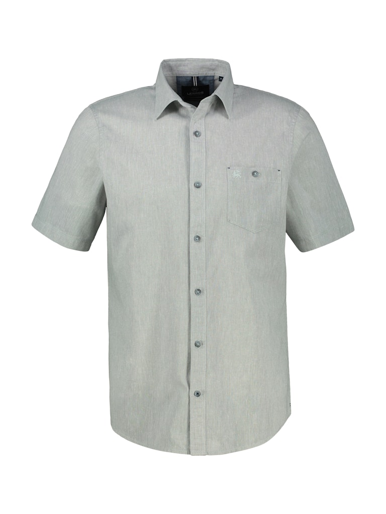 Overhemd van Lerros met korte mouwen, kent kraag, knoopsluiting en een opgestikte borstzak voorzien van knoopje en geborduurd logo.
