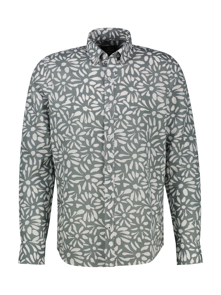 Linnen overhemd van Lerros in een bloemen dessin met lange mouwen, button-down kraag en een knoopsluiting.
