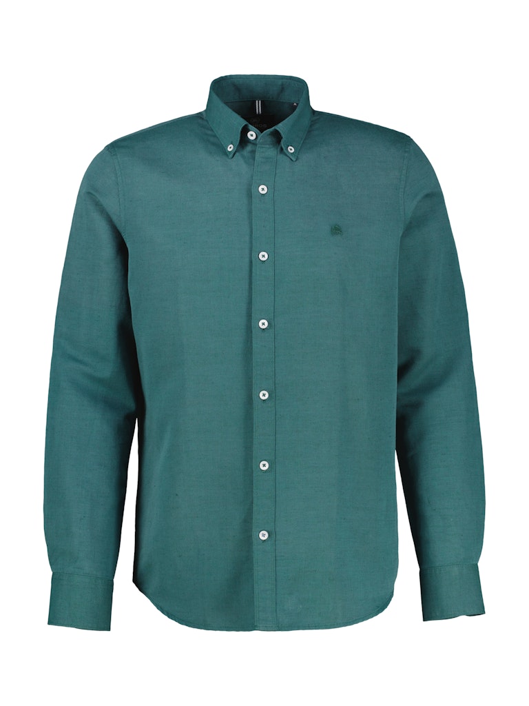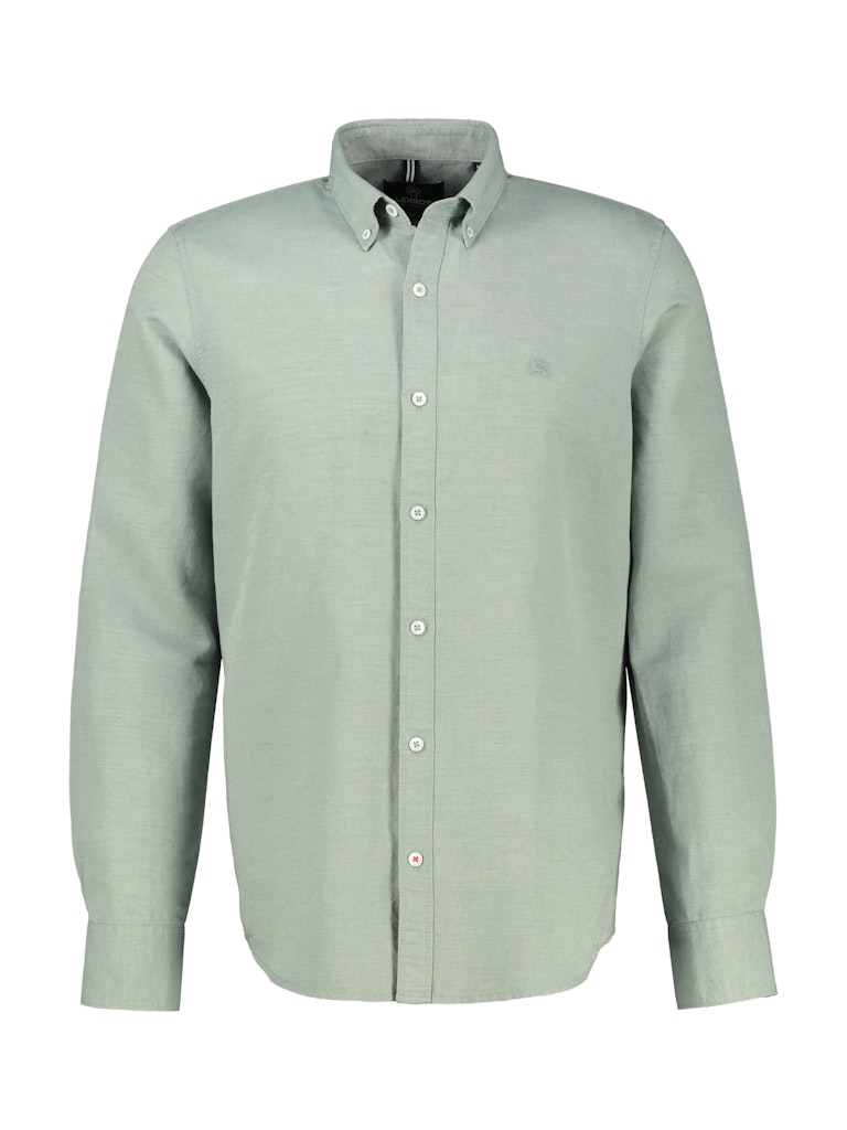 Linnen overhemd van Lerros met lange mouwen, button-down kraag, knoopsluiting en een geborduurd logo op de linkerborst.