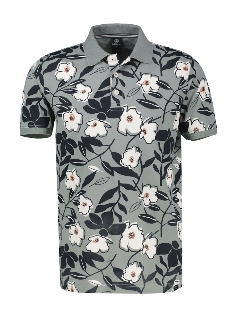 Polo van Lerros in een all-over dessin met korte mouwen en polokraag voorzien van korte knoopsluiting. Materiaal: Katoen 100%