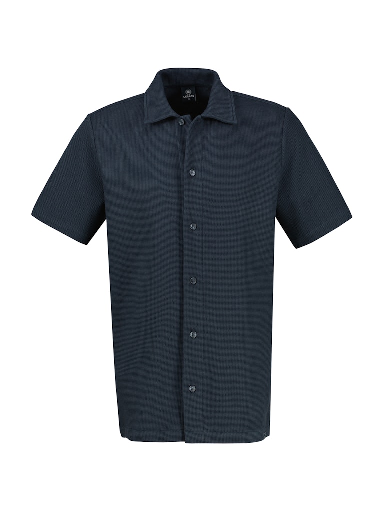 Polo van Lerros in een fijne structuurstof met korte mouwen, polokraag, knoopsluiting en korte split in de zijnaden. Materiaal: Katoen 85%| polyester 12%| elastan 3%