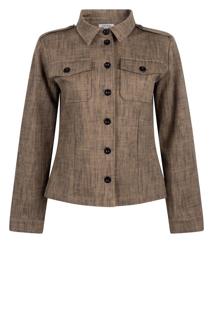 Jacket van ZOSO in een gemêleerd dessin met lange mouwen, knoopsluiting, klassieke kraag, klepzakken op de borst en epauletten op de schouders.