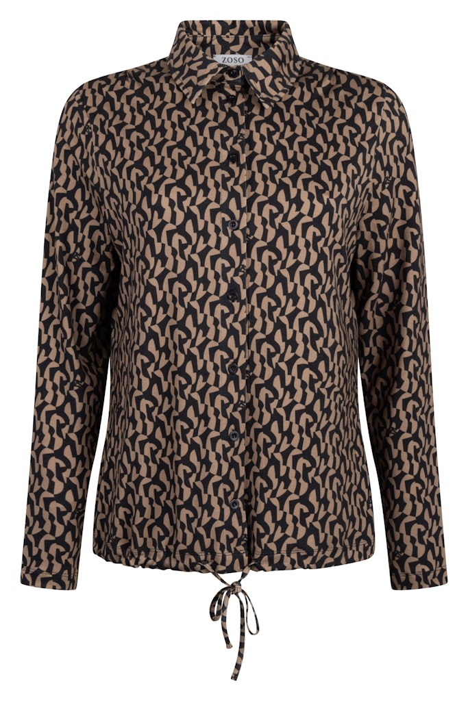 Blouse van Zoso in een all-over dessin met lange mouwen, kraag, knoopsluiting en een trekkoord in de zoom. Materiaal: Viscose 95%| elastan 5%