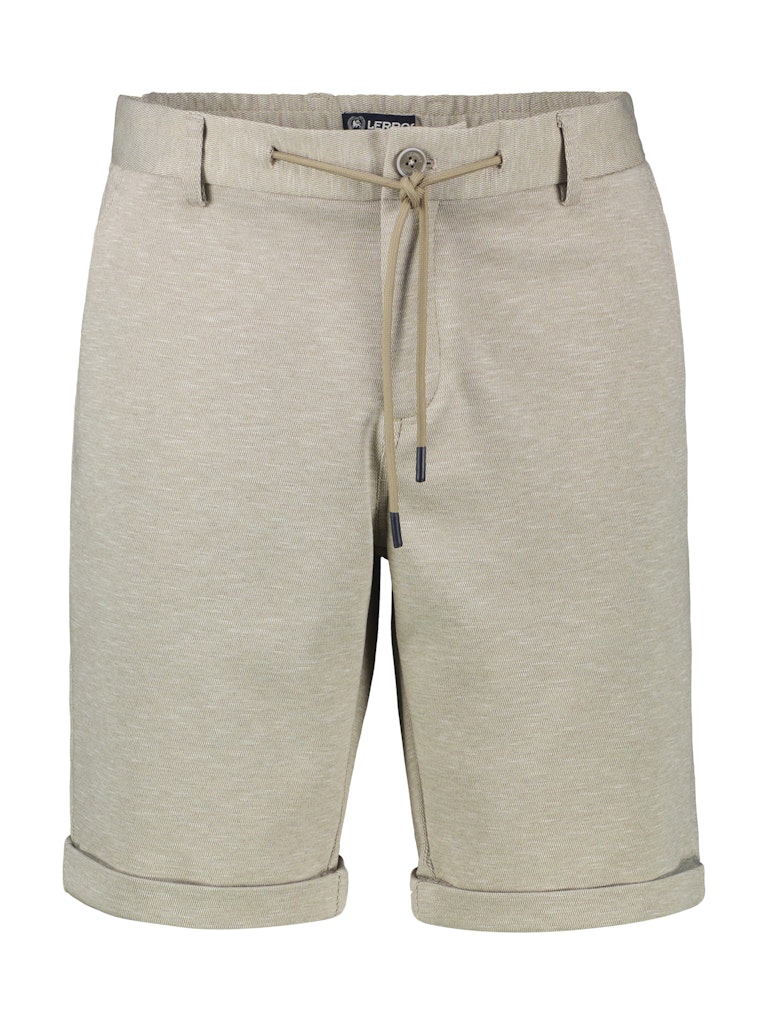 Short van Lerros in een gemêleerd dessin met een knoop- en ritssluiting, steekzakken, twee paspelzakken en een elastische tailleband aan de achterzijde en een trekkoord in de tailleband.